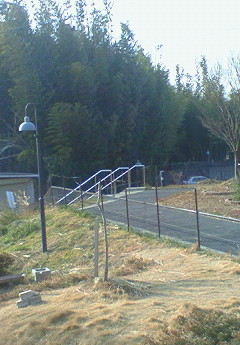 奥の生い茂っている所が竹藪です。