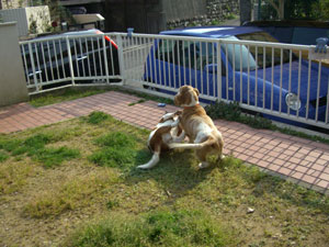 その前に飼い主たちはお昼ご飯食べに行っちゃって、私たちは待ちぼうけ。