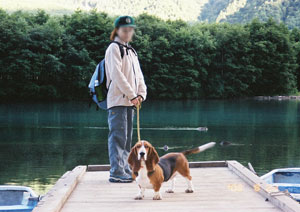 1歳のジュディを連れて上高地へ行ったときですね。大正池で休憩中です。