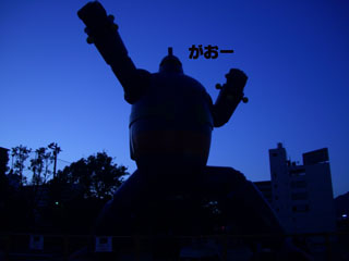 まるで鉄人8号が正太郎君に叱られているように見えます。