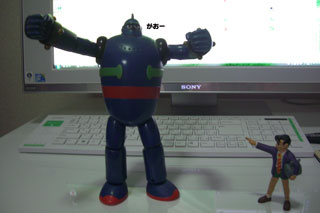 この鉄人8号、めちゃめちゃ安定悪くて、ふと見るとたまにひっくり返ってます。