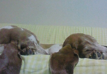 こんな犬はうちにはいません。朝はゴハンの催促をするだけの耳長ダラダラ犬なら2匹おりますが。